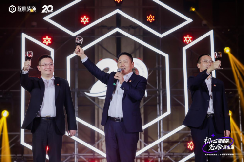 盛典晚宴在温馨感人的氛围中开场,董事长杨海携两位副总裁共同举杯,向过去20年辛勤付出的全体员工,以及支持统帅装饰发展的各界人士致以诚挚感谢,他邀请全场举杯同庆,共向美好未来。