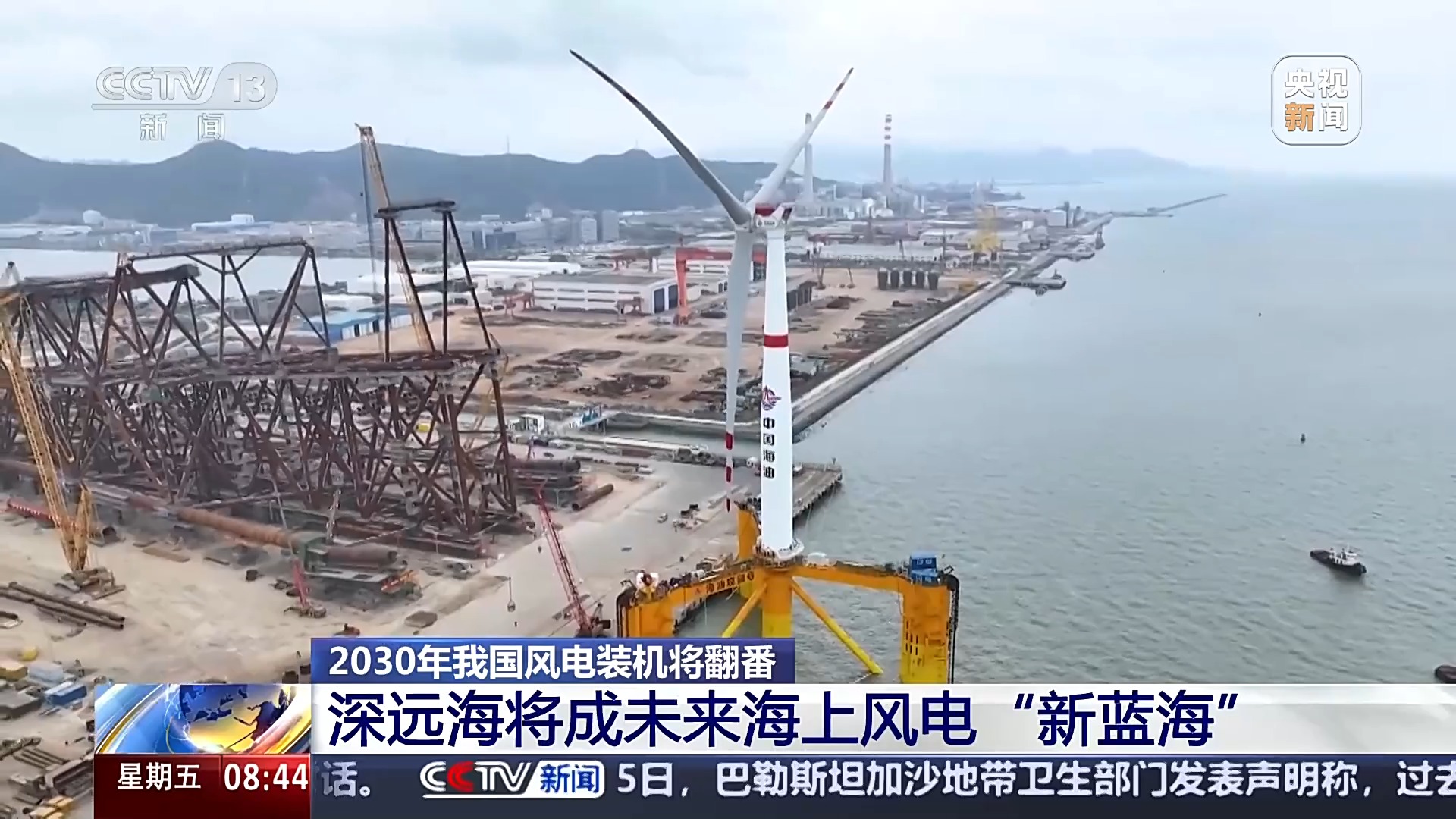 总台央视记者 古峻岭:在汕头国际风电创新港的旁边一个风电场的中控室,从屏幕上实时传送的是位于汕头以东二三十公里的一个海上风电场。