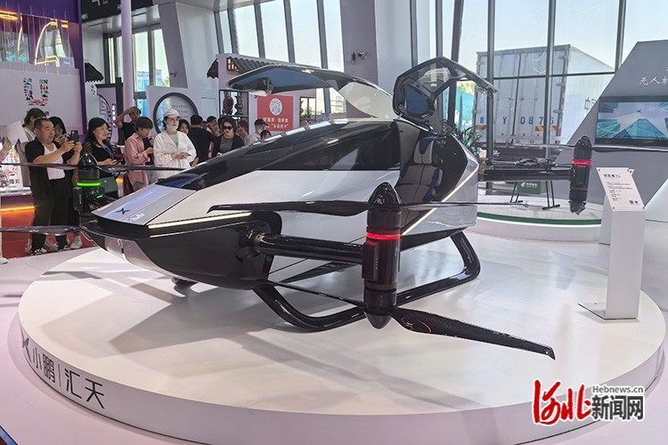 在参与展示的企业中,来自广东汇天航空航天科技有限公司的陆空一体式飞行汽车旅航者 X2吸引了大量参观者驻足体验。廊坊经洽会开幕当天,旅航者X2实现了飞行汽车在京津冀地区首飞,“丰翼无人机+丰巢无人机接驳柜”全程无人配送模式也首次在北方实现。