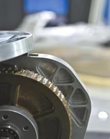 8月2日,在成都高新区沃飞长空全球总部拍摄的其拥有自主知识产权的全倾转机构的齿轮,这项技术实现了载人无人机角度控制更精细。