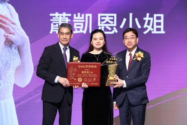 视障女钢琴家萧凯恩(中)获得“世界杰青·世界杰出华人青年奖”
