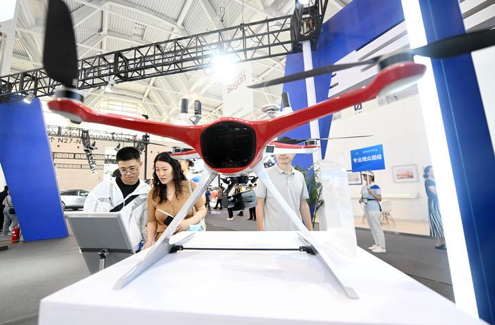 6月21日,参观者在博览会低空经济展团参观一款无人机。新华社记者 赵子硕 摄