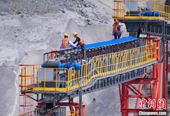 与此同时,项目建设管理团队发挥装备优势,马道枢纽累计投入履带式布料机、履带吊+吊罐等浇筑设备65台,并将首次研发应用的布料机顶升平台、大粒径低坍落度混凝土运输罐车投入协同作业,单日混凝土浇筑峰值达到8800立方米。企石枢纽首次引入智慧胶带机布料系统,加强复杂环境下水平运输效率,实现浇筑效率达每小时80立方米至120立方米,并配合履带式布料机+吊罐强联动的浇筑方式,提升大体积混凝土快速入仓效率。青年枢纽引入混凝土抗压强度智能检测机器人,该设备在广西首次应用,可实现24小时无人化混凝土试件抗压强度检测,日最大检测量为500组,有效提高了施工效率。